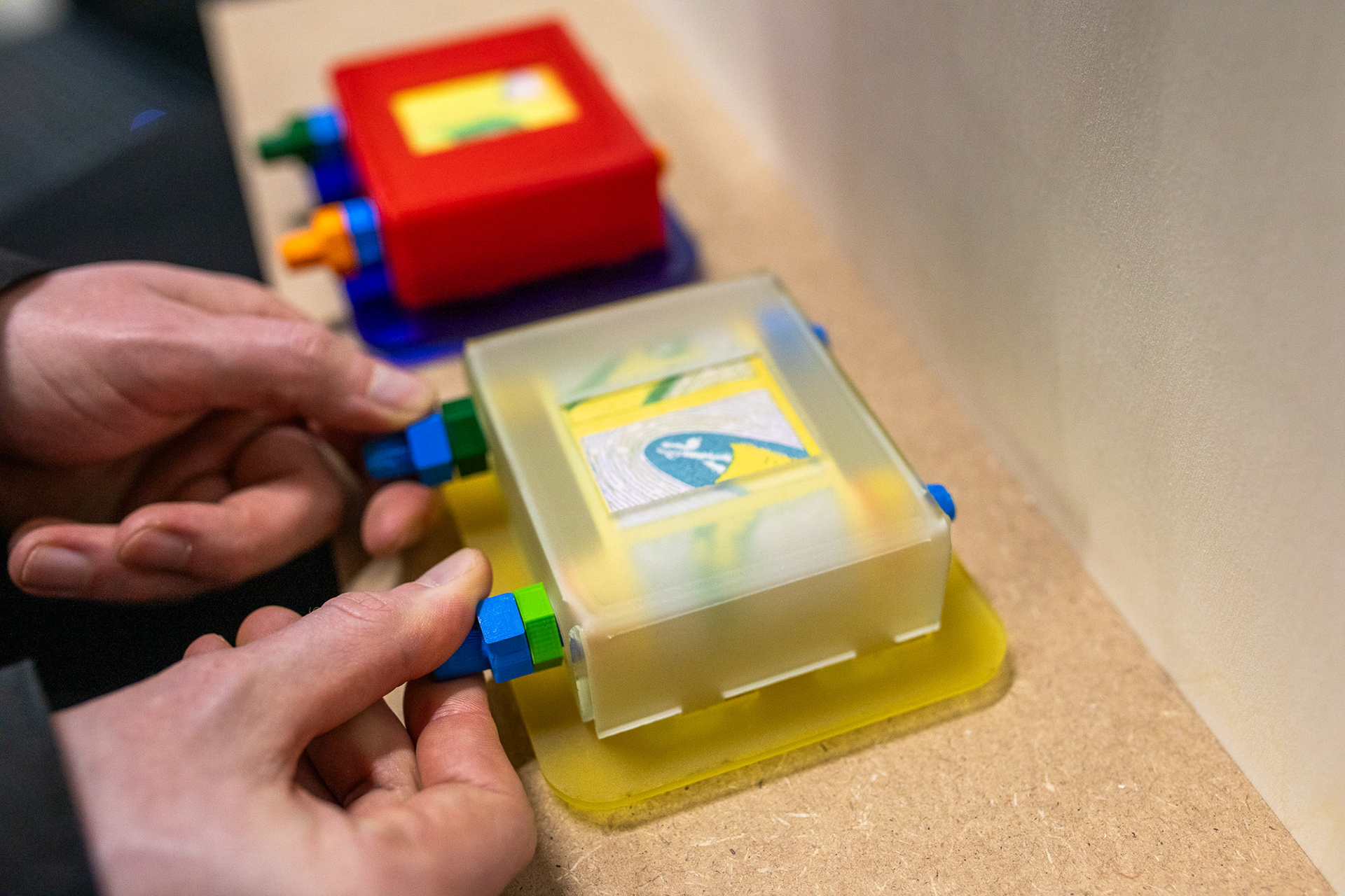 Devices for holding the scrolls are made using a laser cutter and 3D printers. The story was printed by Riso.